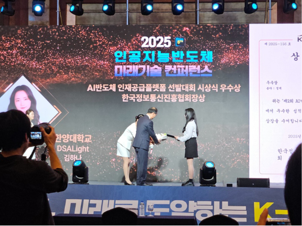 ÇѾç´ëÇб³ À¶ÇÕÀüÀÚ°øÇаú ±èÇϳª ¹Ú»ç°úÁ¤°ú ÀΰøÁö´É¹ÝµµÃ¼°øÇаú ÃÖ´Ù¿ø ¼®»ç°úÁ¤ ÇлýÀÌ ‘2025 AI¹ÝµµÃ¼ ±â¼úÀÎÀç ¼±¹ß´ëȸ(AI Chip ÄÜ)’ ¼³°èºÐ¾ß¿¡¼ ¿ì¼ö»óÀ» ¼ö»óÇϸç AI ¹ÝµµÃ¼ ¼³°è ¿ª·®À» ÀÔÁõÇß´Ù.